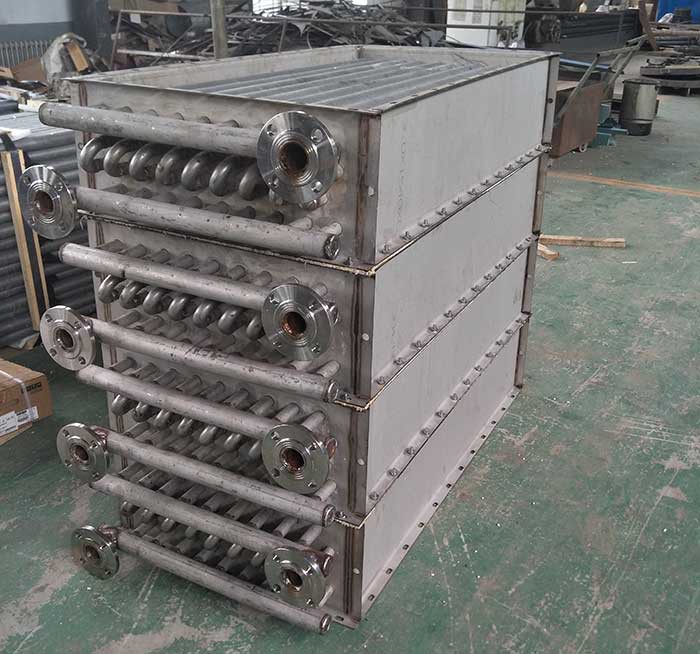 不銹鋼換熱器采用鋁軋翅片管制成,工藝科學(xué),傳熱性能好,使用壓力不許超過12kg/cm2,根據(jù)熱負(fù)荷大小分為2或3排二種管束排列形式。